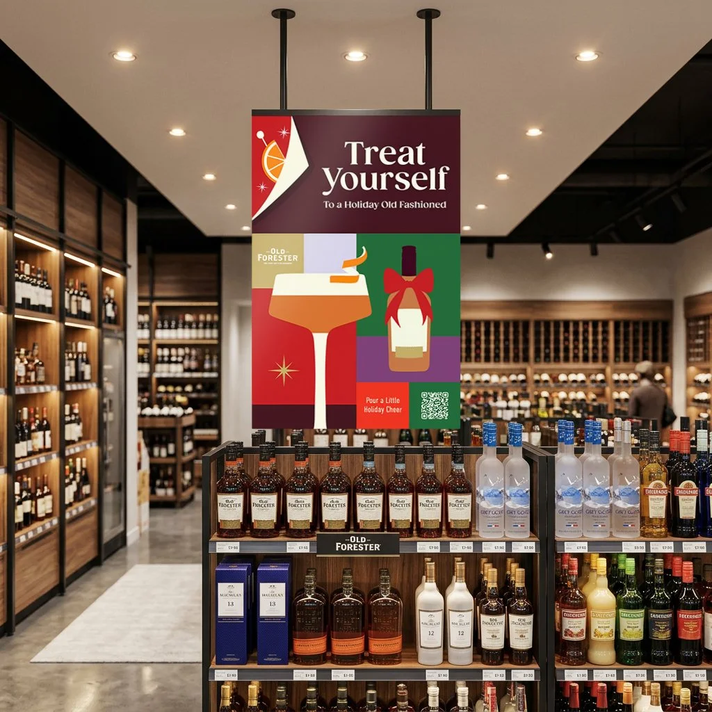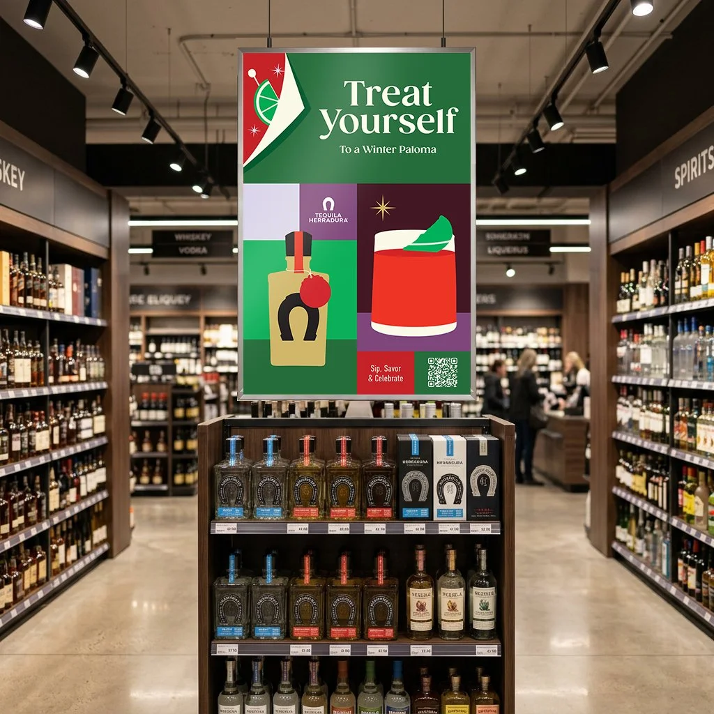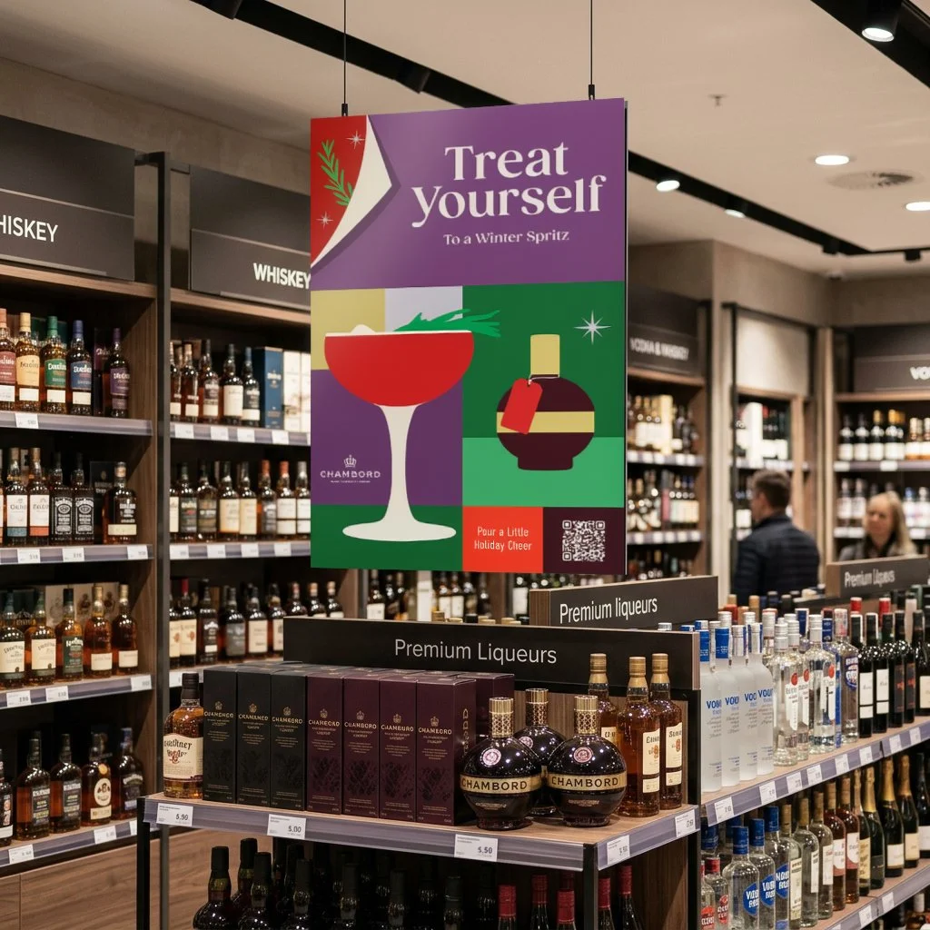 This holiday campaign was designed as a flexible, system-first creative platform that seamlessly scales across in-store, digital, and experiential touchpoints. Inspired by the structure of advent calendars, the visual language is built on a modular grid allowing individual panels to shift, swap, and recombine while maintaining a cohesive brand story across multiple spirits and cocktail recipes. The design leans into a refined sense of holiday nostalgia, anchored by a controlled color palette rooted in classic seasonal tones. Flat, graphic iconography draws from familiar festive cues (citrus slices, ribbons, ornaments, and glassware) evoking the charm of vintage wrapping paper while keeping the overall execution modern and elevated. The result is a campaign that feels both festive, giftable and collectible, and designed to capture attention at shelf while inviting discovery throughout the season.